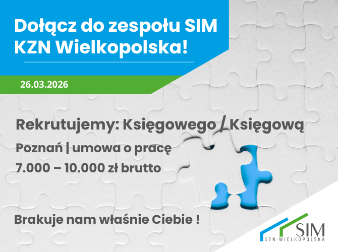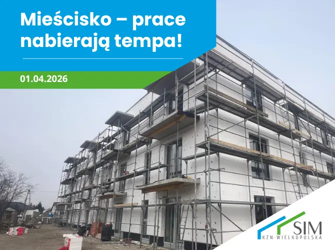 Aktualności Aktualności Nabór uzupełniający na mieszkania SIM w Dąbiu Nabór uzupełniający na mieszkania SIM w Dąbiu • 14.04.2026 Konkurs na stanowisko Prezesa Zarządu Spółki Konkurs na stanowisko Prezesa Zarządu Spółki • 10.04.2026 Nabór wniosków na lokale mieszkalne SIM w Sompolnie Nabór wniosków na lokale mieszkalne SIM w Sompolnie • 09.04.2026 SIM Sompolno – budowa nabiera tempa! SIM Sompolno – budowa nabiera tempa! • 07.04.2026 Radosnych Świąt Wielkanocnych Radosnych Świąt Wielkanocnych • 03.04.2026 Mieścisko – prace nabierają tempa! Mieścisko – prace nabierają tempa! • 01.04.2026 Dołącz do zespołu SIM KZN Wielkopolska Dołącz do zespołu SIM KZN Wielkopolska • 26.03.2026 SIM Sompolno rośnie w oczach! SIM Sompolno rośnie w oczach! • 26.03.2026 Ruszył nabór na mieszkania SIM w Białej Ruszył nabór na mieszkania SIM w Białej • 19.03.2026 Postępy prac – inwestycja SIM w Mieścisku Postępy prac – inwestycja SIM w Mieścisku • 16.03.2026 SIM Sompolno – wykonano płytę fundamentową SIM Sompolno – wykonano płytę fundamentową • 10.03.2026 🌷 Dla Wszystkich Kobiet – z najlepszymi życzeniami! 🌷 Dla Wszystkich Kobiet – z najlepszymi życzeniami! • 08.03.2026 Wspólnie budujemy lepsze miejsce do życia Mieszkania dostępne dla wszystkich Kontakt z nami