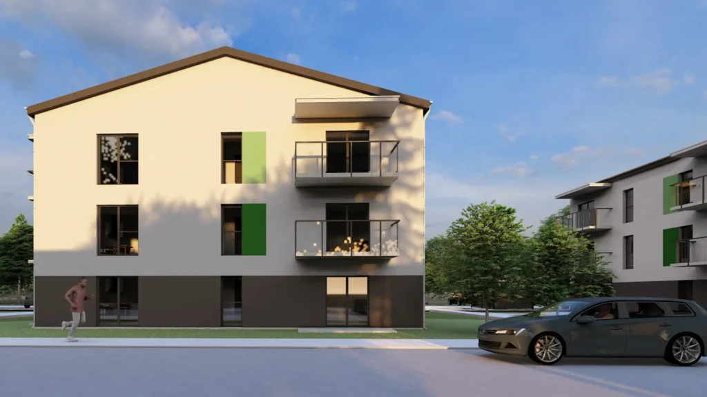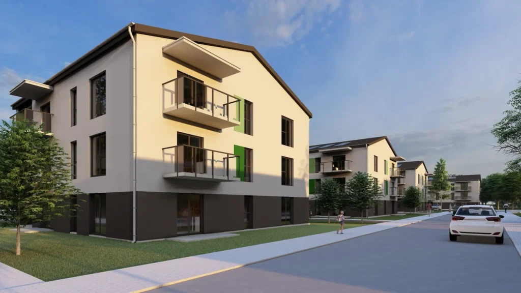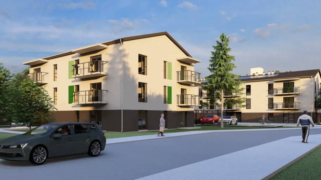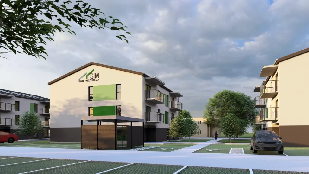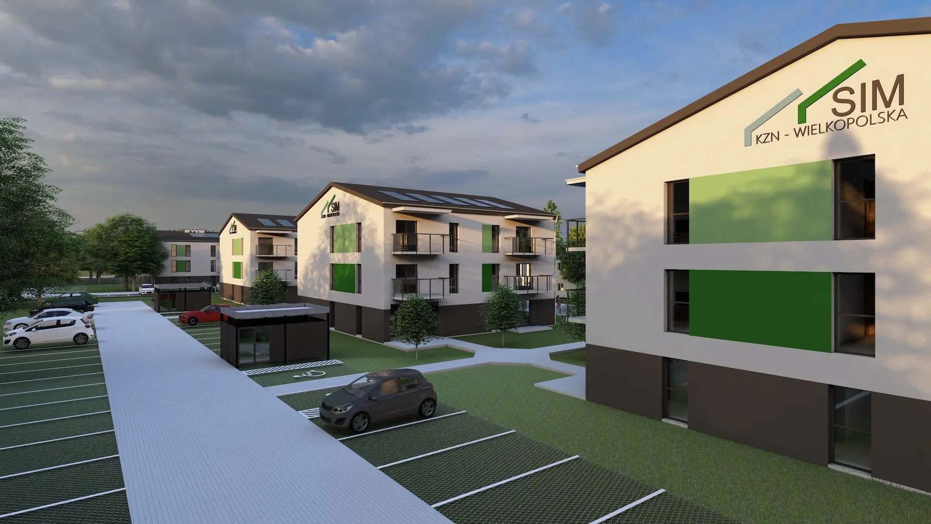 Spółka SIM KZN-Wielkopolska sp. z o.o. realizuje w Gminie Krotoszyn, która jest jednocześnie wspólnikiem Spółki, budowę lokali mieszkalnych o ograniczonym czynszu. Planuje się budowę jednego budynku 23-mieszkaniowego oraz trzech budynków 11-mieszkaniowych z trzema kondygnacjami nadziemnymi oraz dachem spadzistym. Projektowane budynki posiadają jedną klatkę schodową wraz z windą obsługującą każdą kondygnację. Ponadto wybudowane zostaną: droga wewnętrzna z miejscami postojowymi, chodniki, wiata rowerowa stanowiska do ładowania samochodów elektrycznych oraz miejsce gromadzenia odpadów. W I etapie inwestycji realizowany będzie budynek 23-mieszkaniowy, natomiast realizacja mniejszych trzech, 11-lokalowych nastąpi po zmianie Miejscowego Planu Zagospodarowania Przestrzennego, do której przystąpiło Miasto.