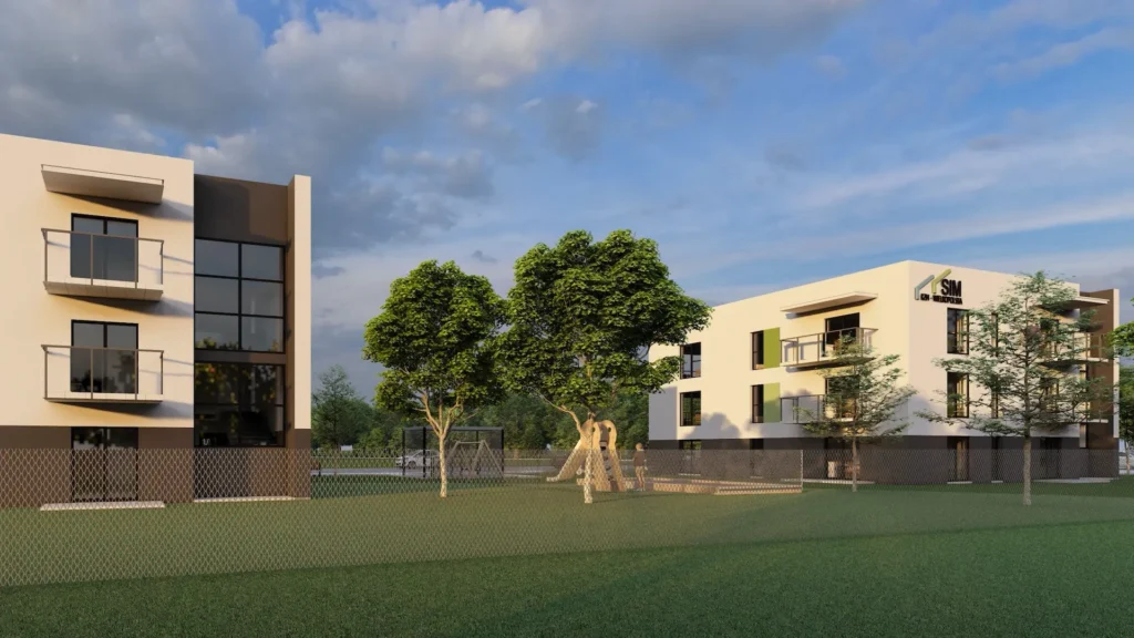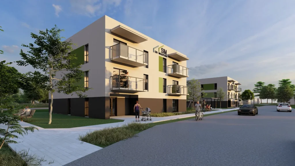 Spółka SIM KZN-Wielkopolska sp. z o.o. realizuje w Pudliszkach Gmina Krobia, która jest jednocześnie wspólnikiem Spółki, budowę lokali mieszkalnych o ograniczonym czynszu. Planuje się budowę dwóch budynku 11-mieszkaniowych z trzema kondygnacjami nadziemnymi oraz dachem spadzistym. Projektowane budynki posiadają jedną klatkę schodową wraz z windą obsługującą każdą kondygnację. Ponadto wybudowane zostaną: droga wewnętrzna z miejscami postojowymi, chodniki, wiata rowerowa stanowiska do ładowania samochodów elektrycznych oraz miejsce gromadzenia odpadów.