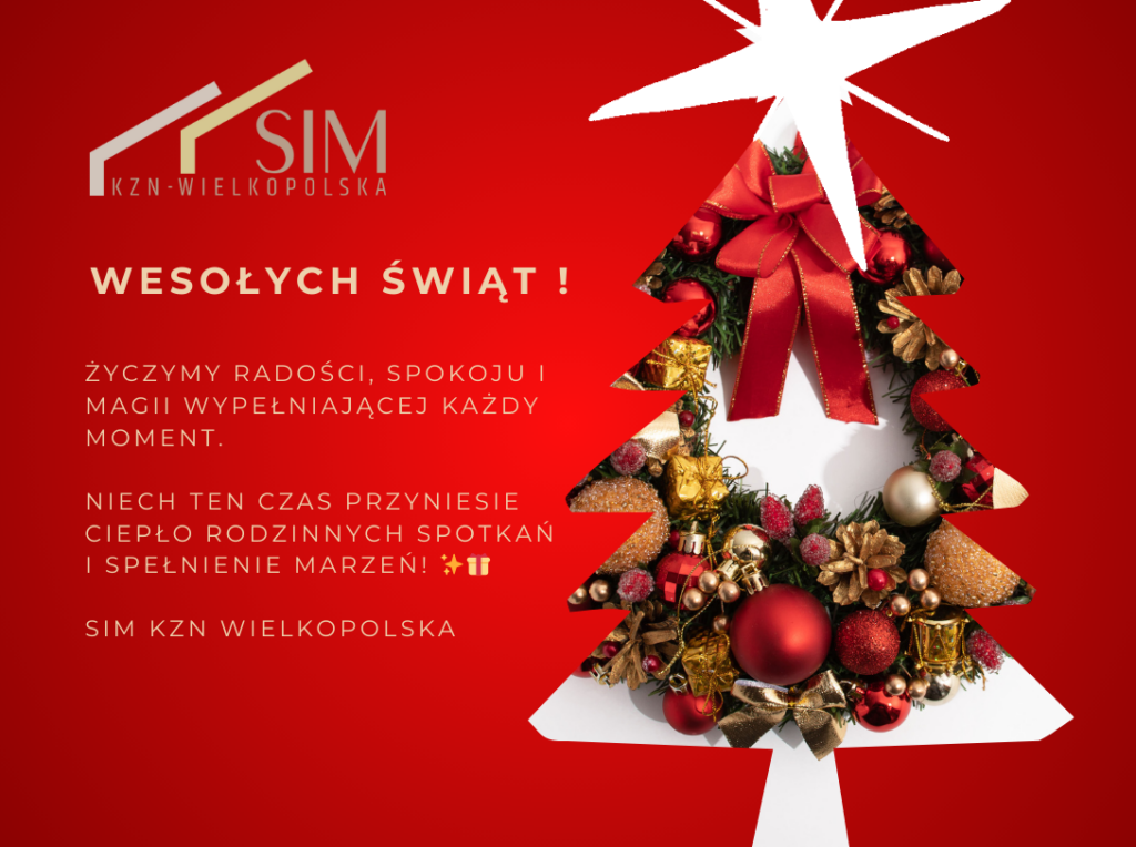 Ważna informacja: w dniu 24.12.2024 Spółka SIM KZN Wielkopolska robi sobie przerwę na pierogi, barszcz i kolędowanie, więc biuro tego dnia nie funkcjonuje. Wracamy do Was pełni energii już po świętach!