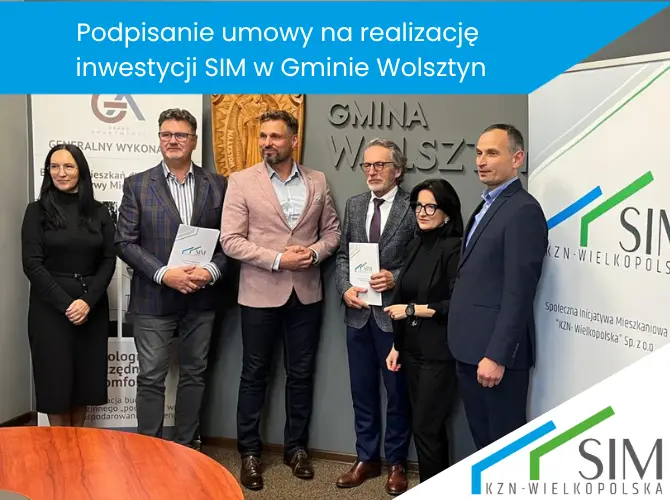 Spółka SIM KZN-Wielkopolska sp. z o.o. realizuje w Gminie Wolsztyn, która jest jednocześnie wspólnikiem Spółki, budowę lokali mieszkalnych o ograniczonym czynszu. Planuje się budowę budynku 31-mieszkaniowego z czterema kondygnacjami nadziemnymi oraz dachem płaskim. Projektowany budynek posiada jedną klatkę schodową wraz z windą obsługującą każdą kondygnację. Ponadto wybudowane zostaną: droga wewnętrzna z miejscami postojowymi, chodniki, wiata rowerowa stanowiska do ładowania samochodów elektrycznych oraz miejsce gromadzenia odpadów.