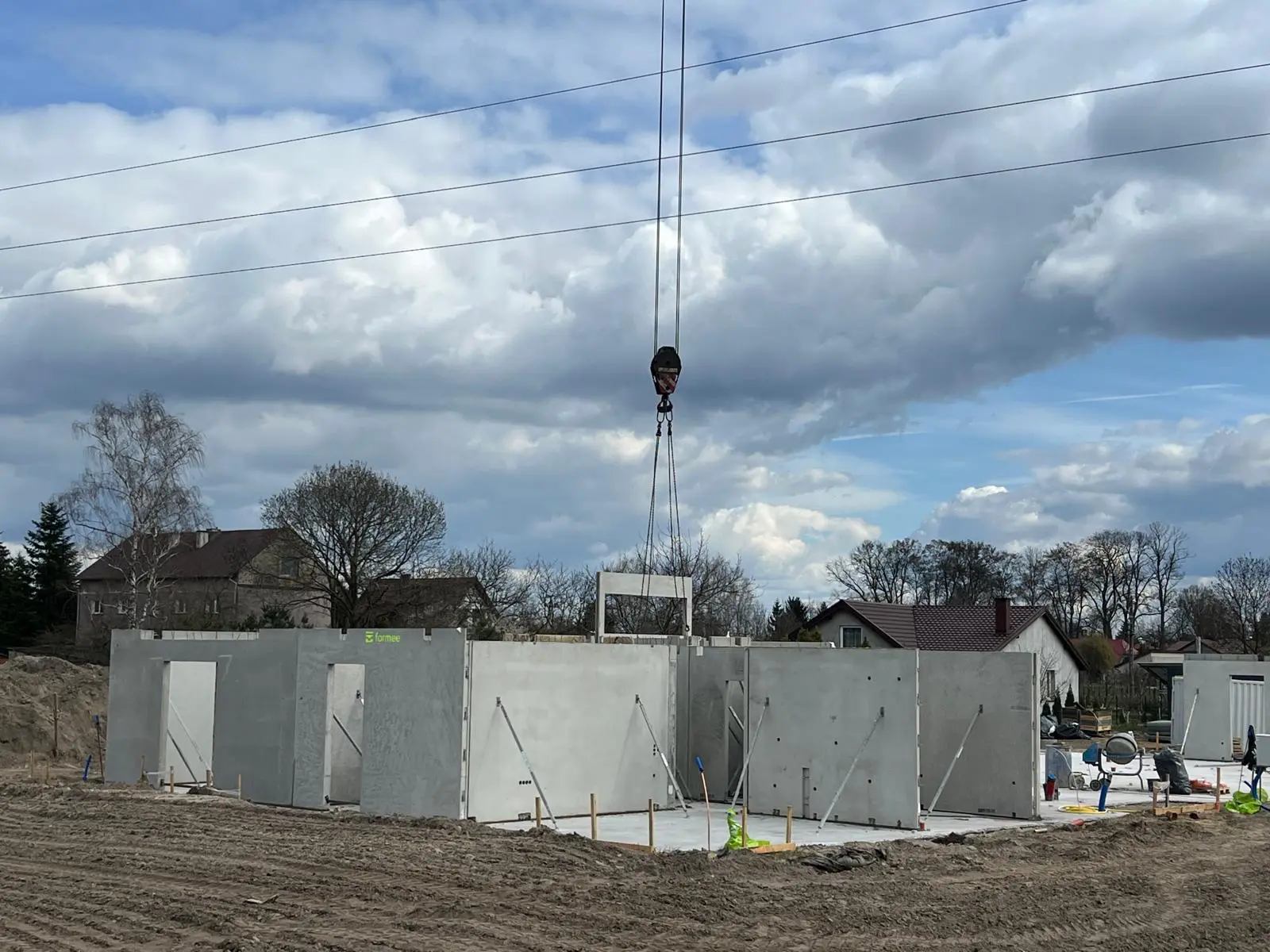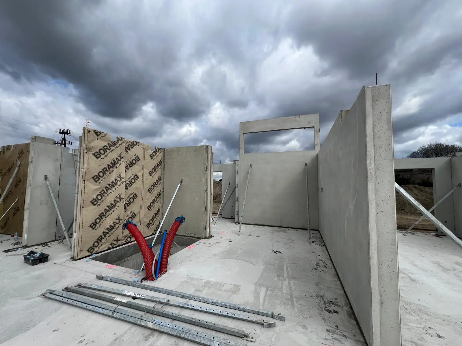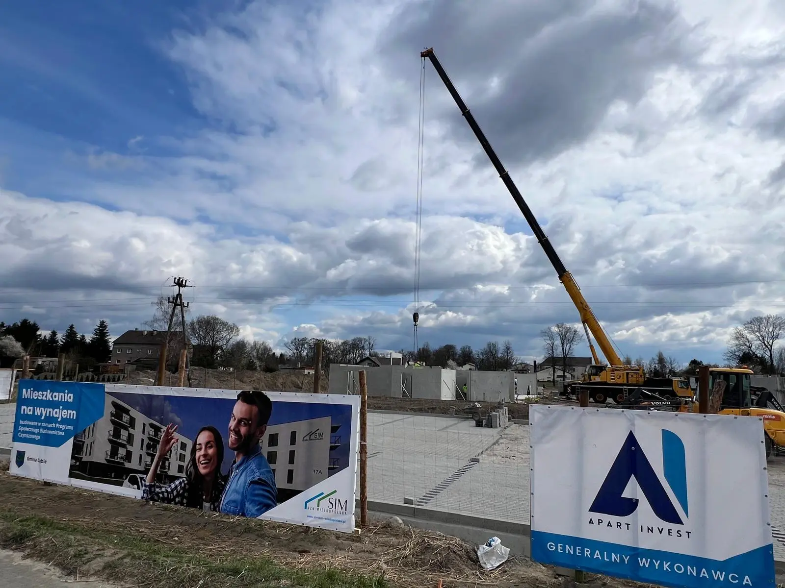 Na placu budowy powstają pierwsze ściany jednego z dwóch planowanych budynków mieszkalnych, które realizujemy z myślą o zapewnieniu nowoczesnych i komfortowych mieszkań dla lokalnej społeczności.