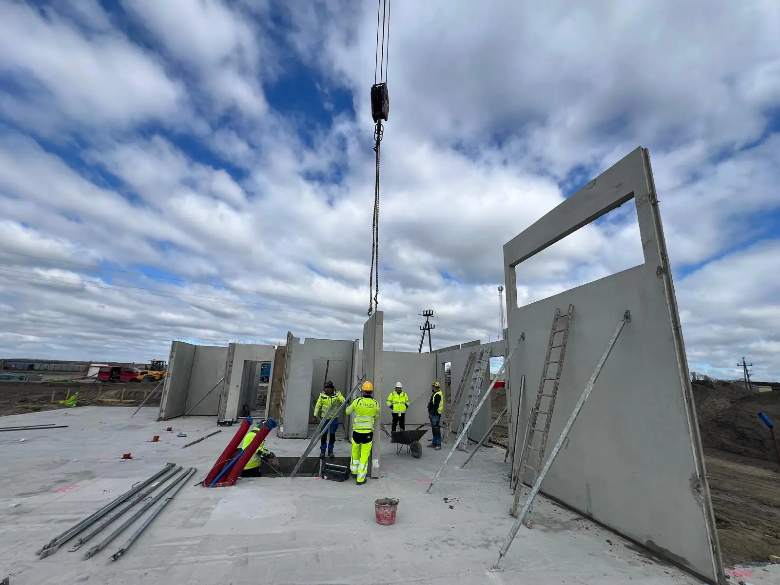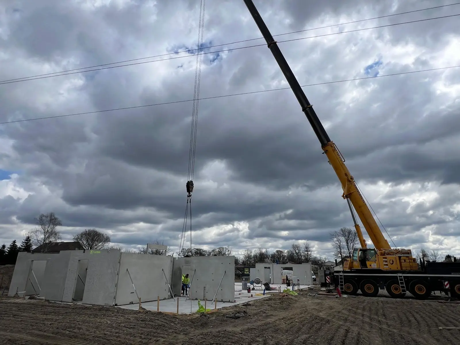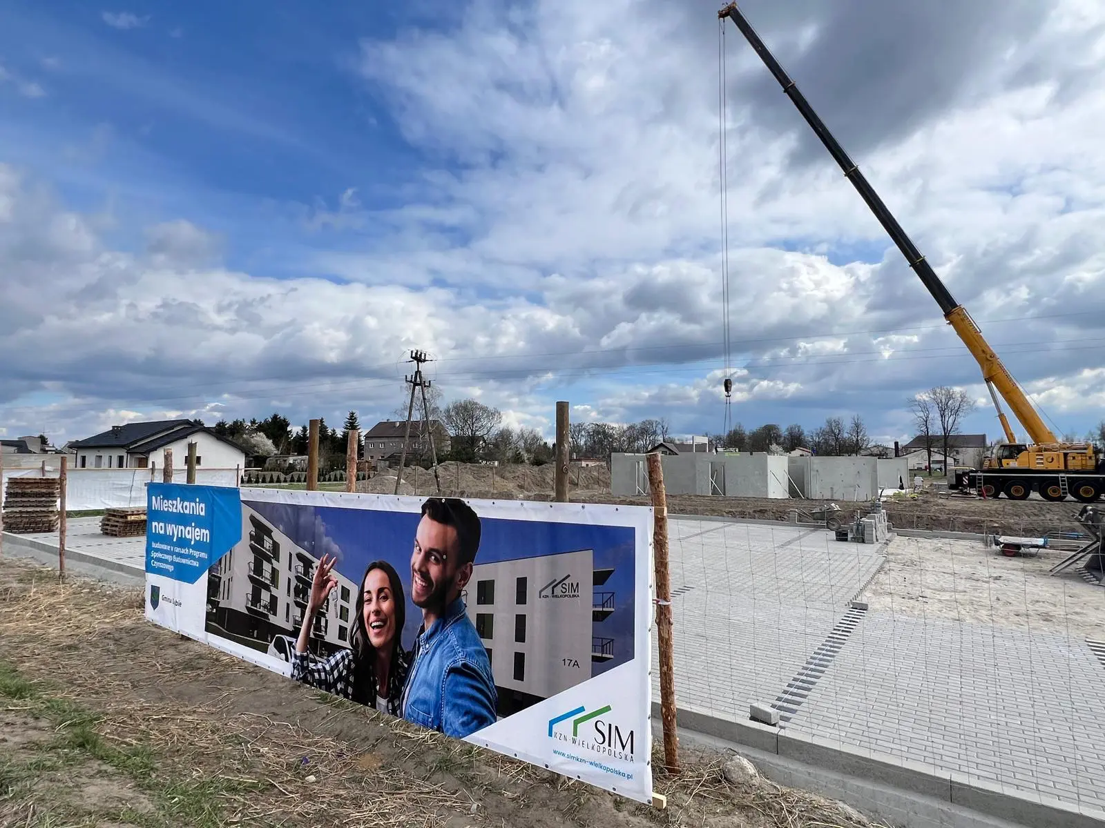 Na placu budowy powstają pierwsze ściany jednego z dwóch planowanych budynków mieszkalnych, które realizujemy z myślą o zapewnieniu nowoczesnych i komfortowych mieszkań dla lokalnej społeczności.